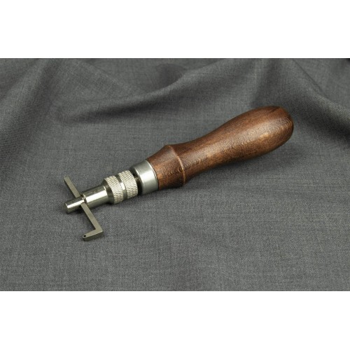 რეგულირებადი ღარების საჭრელი ხის სახელურზე არის ტყავთან მუშაობის ხელსაწყო, რომელიც შექმნილია ტყავში ნახევარწრიული ღარისთვის ამ ღარის გასწვრივ კანის შემდგომი ნაკერისთვის.